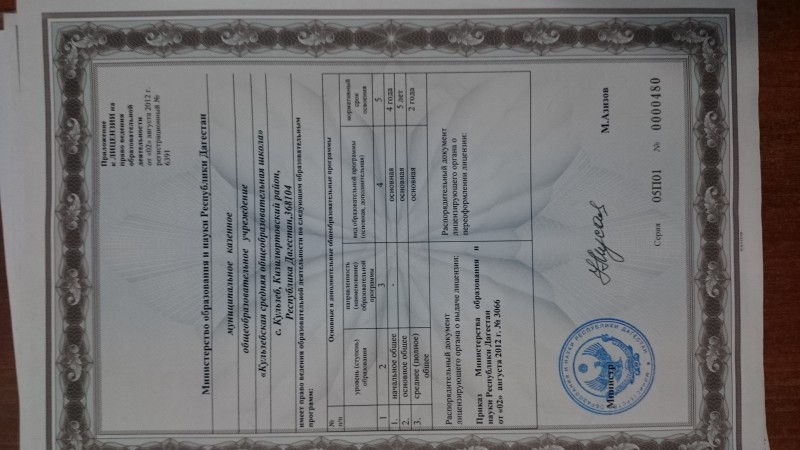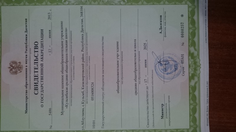 Адрес местонахождения образовательной организации* Республика Дагестан Кизилюртовский р-н, с. Кульзеб, ул.Абдулаева 5