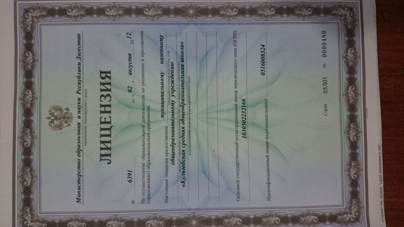 Полное наименование образовательной организации* МКОУ "Кульзебская СОШ"